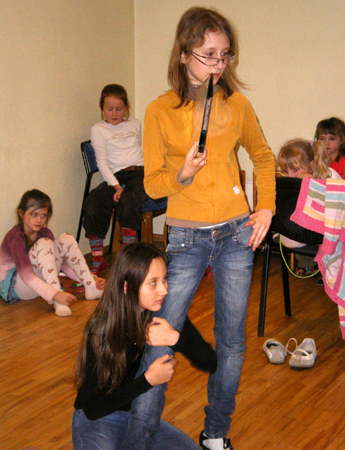 Ребята, готовя свои первые театрализованные представления, продолжают осваивать искусство импровизации, пластики, режиссуры и актерского мастерства.