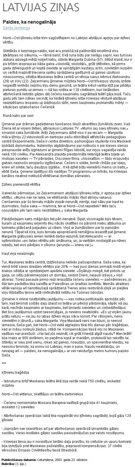 гастрольном представлении "Норд-Оста". Здесь впервые